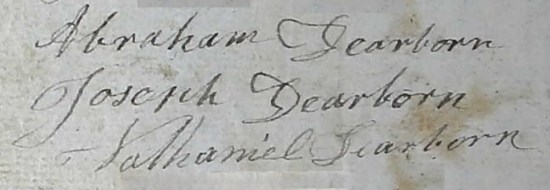 Nathaniel Dearborn, as well as his father, Abraham Dearborn, and his brother, Joseph Dearborn, all signed the