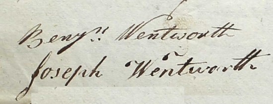 Son-in-law Benjn Wentworth, [future son-in-law,] Joseph Wentworth, and