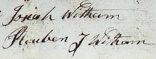 Reuben J. Witham, and his father, Josiah Witham, signed the Milton Militia Division petitions of November 1820. (See Milton Militia Division Petitions – November 1820 and Milton Militia Dispute – 1820).