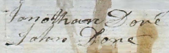 County of Strafford, Ss. On this 23rd day of October 1829 personally appeared in open court being a Court of Record in said County, Jonathan Dore resident in said County, aged Seventy three years, who being first duly sworn according to Law doth on his oath make the following declaration in order to obtain the provision made by the Acts of Congress, of the 18th March 1818, and the first of May 1820, that he the said Jonathan Dore enlisted for the term of twelve months some time in the summer of 1776 in the State of New Hampshire in the Company commanded by Captain John Brewster in the Regiment commanded by Colonel [Pierce] Long in the line of the State of New Hampshire on the Continental establishment; that he was stationed at Great Island where said Company continued until the Spring of 1777, at which time the principal part of said Company under command of said Brewster marched on to the frontier in the Western part of New York & joined the army under Gen. Gates; the remaining part of said Brewster’s Company in which he was included continued at the Island until sometime during the summer of that year, at which time he marched to Providence in Rhode Island under the command of Captain Grant and composed a part of Colonel Titcomb’s regiment and continued in the Service near Providence until his term of Service enlistment expired and he was discharged at said Providence. In the fall of 1777 he enlisted on board the Ranger, a Continental Ship, and served aboard said Ship about four months during which time she took the Georgia fleet of Seven sail out of Eleven. In the Spring of 1778 [July 9, 1780] he enlisted for three months under Captain Emerson and went to West point on the North river and was there at the time General Arnold attempted to betray that fortress ~ when after serving the term of his enlistment he was discharged ~ He then returned home & immediately took his brother Daniel Dore’s place in Captain Goodwin’s Company in Colonel Cobb’s regiment, (his said Brother having become disaffected [about] the service) and he marched to Penobscot & remained there about two months when the shipping being burned & after other disasters they were disbanded & he returned home.